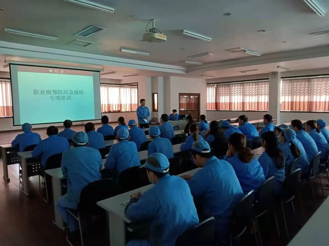 10月23日上午,公司组织全员进行职业病危害演练,整个活动分为职业病危害知识讲解、现场模拟职业病突发事件演练两个过程。